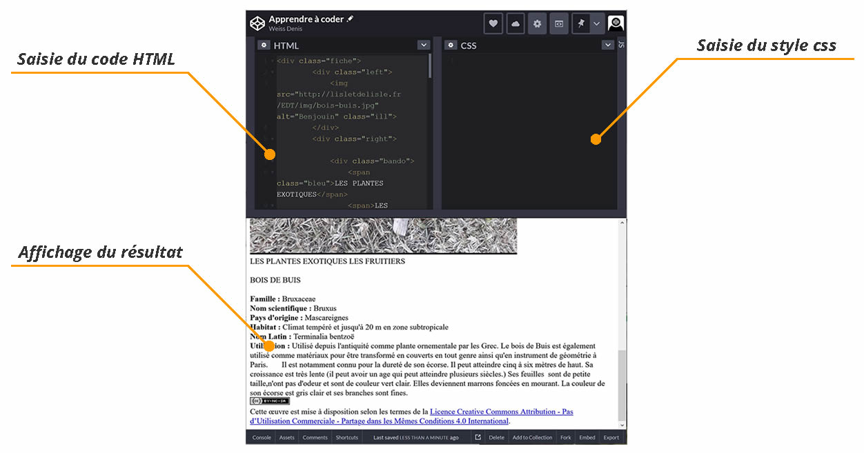 Évidemment, il ne s'agit pas d'apprendre tout le HTML, restons modestes, mais simplement de réaliser une page, à l'instar de la fiche botanique ci-contre réalisée par un groupe d'élèves de seconde. Le tout en une heure.