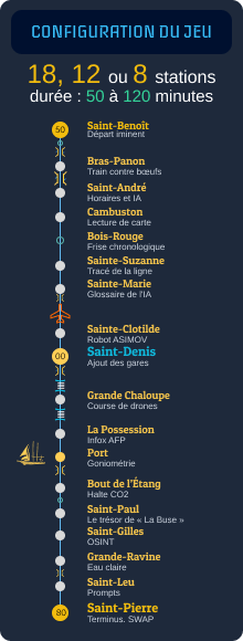 Vous choisissez aussi la durée totale du jeu, entre 50 et 120 minutes, selon le niveau de défi souhaité. Reconstituer la ligne du TiTrain